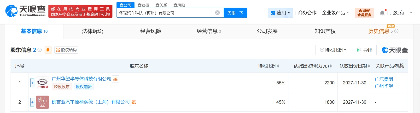 每经AI快讯10大配资公司,天眼查工商信息显示,近日,华瑞汽车科技(梅州)有限公司成立,法定代表人为邓小峰,注册资本4000万元人民币,经营范围为汽车零部件及配件制造、汽车零配件批发、汽车零配件零售、汽车零部件研发、工程和技术研究和试验发展、电机及其控制系统研发等。股东信息显示,该公司由广州华望半导体科技有限公司、佛吉亚汽车座椅系统(上海)有限公司分别持股55%、45%。