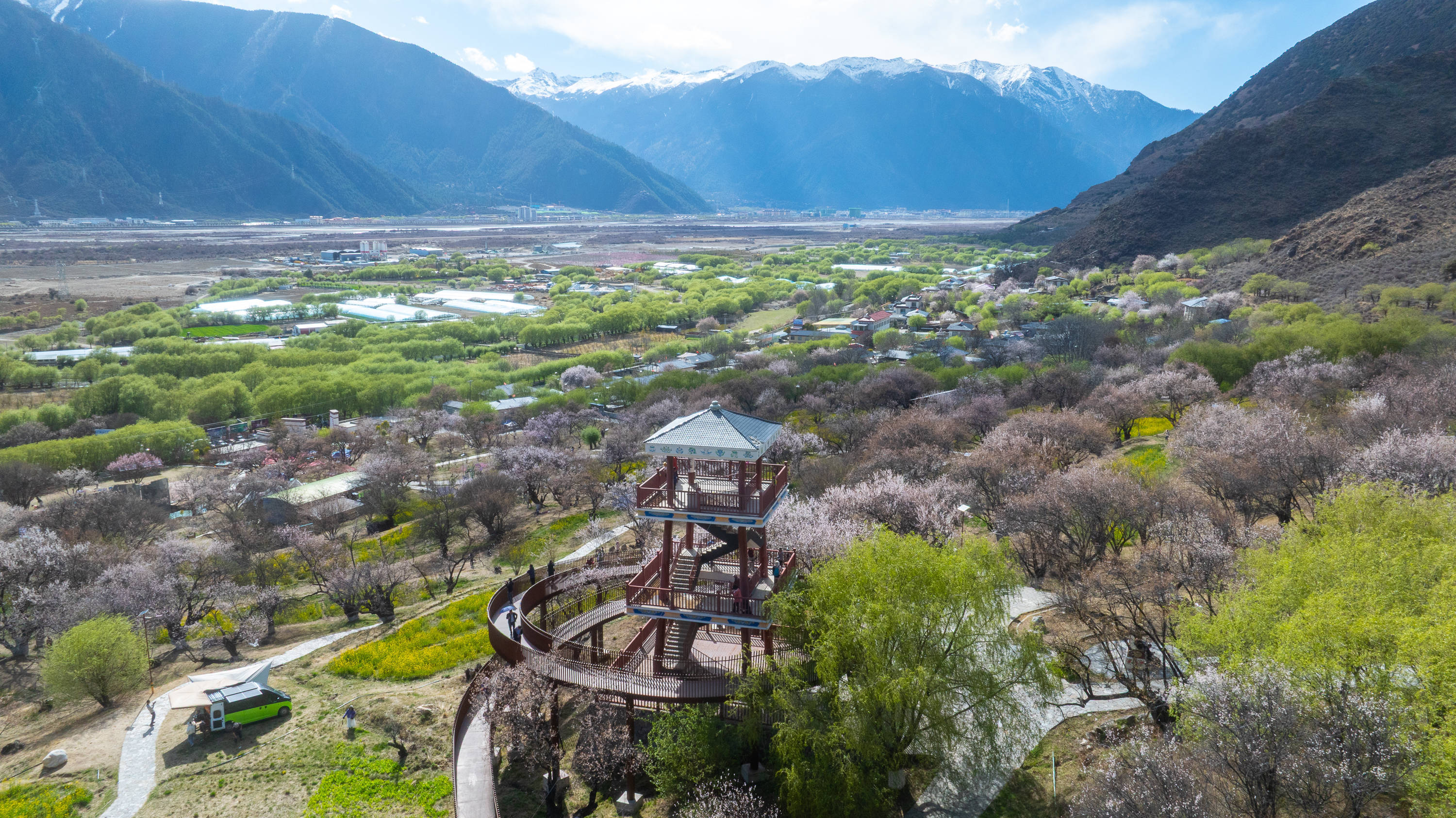 百里桃林沐雪盛放,粉霞漫卷河谷山川,远瞰犹如精心雕琢却又恣意铺展的粉彩画卷。在喜马拉雅山脉的褶皱里,这股“温柔”而向上的“野性”,昭示着西藏最早的春天已经到来。